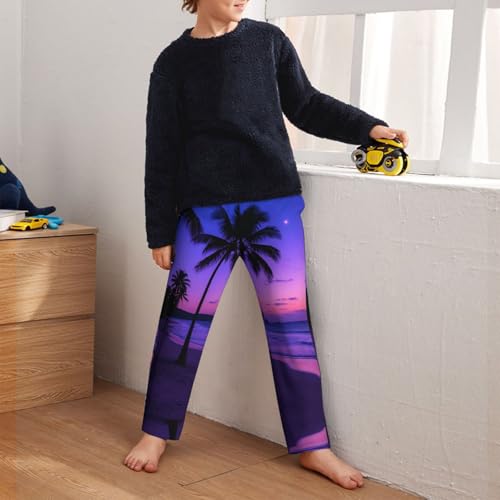 HOT ! Pajama Pants Pajama Bottoms with Elastic Waistband Sleepwear Lounge PantsSea Beach Coconut Tree Sunset
