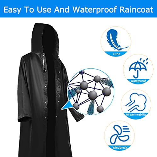Roctee 2 Pack Black Portable Rain Ponchos, Reusable Rain Jacket for Adults with Hood, Raincoats Outdoor XLarge, Rain Coat 4
