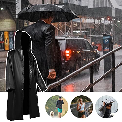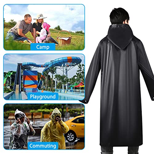 • *【Universal Size】The length of each extra large waterproof raincoat (excluding the hat) is 50.39''(128cm), 33.07''(84cm) in sleeve length and 29.13''(74cm) in the width of the garment. This hooded black poncho can help you keep dry in case of emergencies, it is a ideal emergency kit, suitable for both adult and youth, men and women.