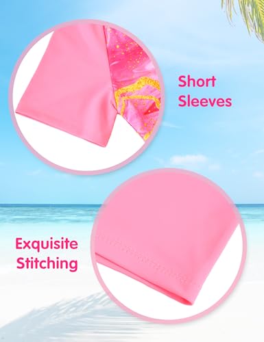 Girls Swimsuit Colorful Short Sleeve Bathing Suits UPF 50+ Rash Guard Set Two Piece Summer Swimwear 4