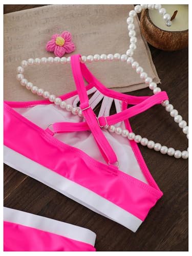 • Feature: Colorblock, Cut Out, Halter Neck, Sleeveless, Criss Cross Back, Wireless Bikini Top and High Waist Bottoms, 2 Pcs Bikini Set for Girls