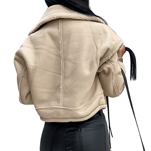 Beeuthios Women Oversized Sherpa Lined Leather Jacket Faux Suede Fleece Shearling Coat Biker Motorcycle Overcoat