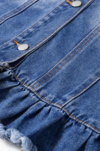 Women's Plus Size Peacock Blue Ruffled Frayed Short Sleeve Denim Jacket 7