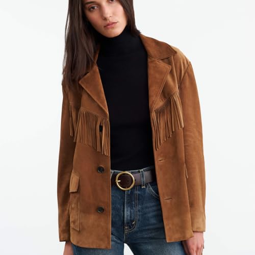 • WESTERN STYLE: timeless western-inspired suede leather jacket featuring decorative fringe detail across the chest and sleeves for an authentic cowboy look