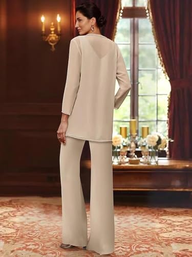 3 Pieces Chiffon Mother of The Bride Pant Suits for Wedding Sequin Wedding Guest Outfit for Women with Jacket 4