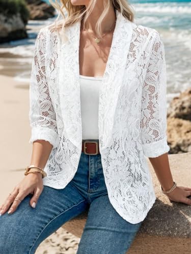 More information about WDIRARA Women's Lace Open Front Long Sleeve Sheer Elegant Casual Blazer Jacket