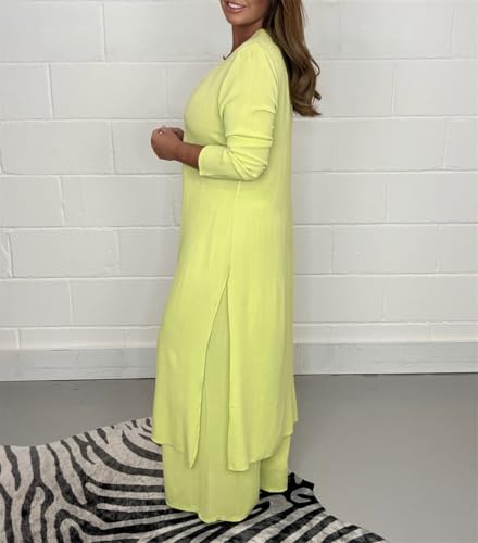 • 【Elegant 2 Piece Sets For Women】Composed of slit long top and high waist wide leg pants, it is a favored style in 2025, loose and cozy, suitable for leisure and travel