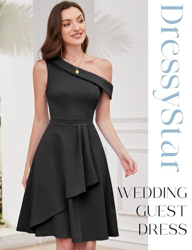 sought-after ! Dressystar Women One Shoulder Ruffle Cocktail Fall Dress A Line Wrap Wedding Guest Formal Knee Length Dresses with Pockets