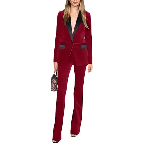 Women's 2 Piece Suits Slim Fit Velvet Formal Double Breasted Lapel Collar Pocketed for Women Suits Dinner Outfits 2