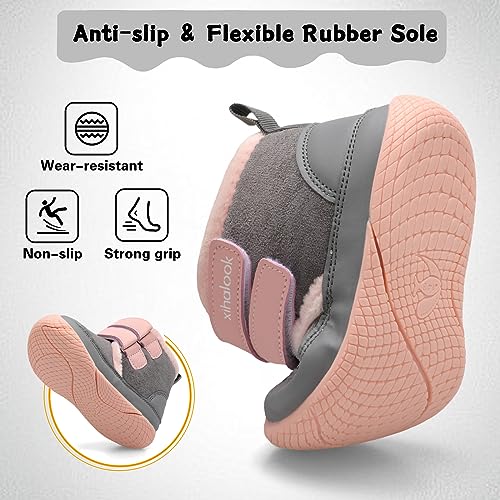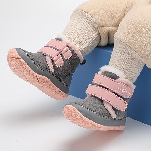 XIHALOOK Toddler Boys Girls Winter Boots Cold Weather Kids Warm Faux Fur Shoes with Two Hook and Loop 5