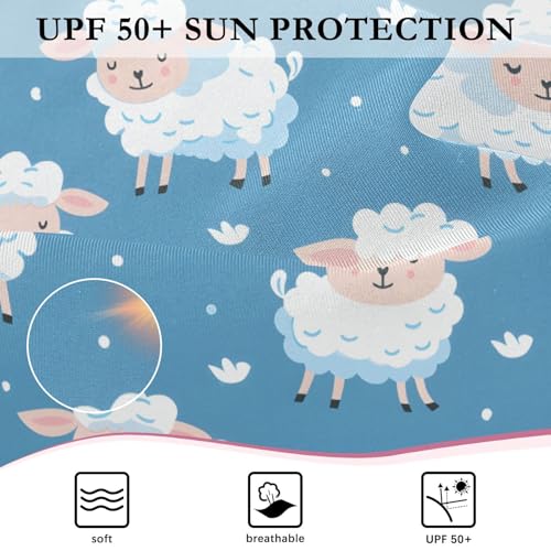 Sheep on Blue Girls Long Sleeve Swimsuits One Piece Zipper Bathing Suit UPF 50+ Rashguard Swimwear 4