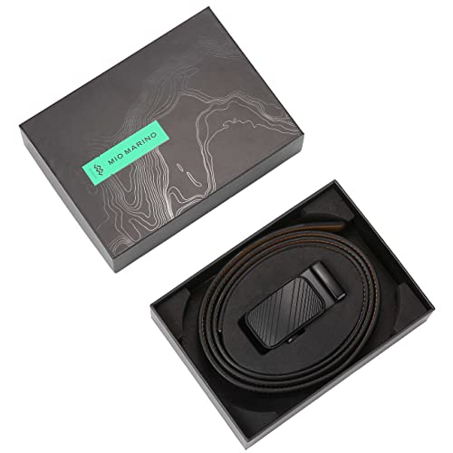 Why Choose Marino Men’s Genuine Leather Ratchet Dress Belt With Automatic Buckle, Enclosed in an Elegant Gift Box - latest Striped - Deep Charcoal - Adjustable from 38" to 54" Waist?