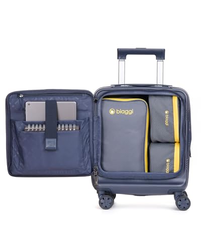 Front-access TSA-approved design: The Biaggi Runway Hybrid opens from the front, offering easy access to essentials like travel documents and electronics. Its TSA-approved design allows quick access while on airplanes, buses, or trains, perfect for hassle-free travel.Underseat and overhead storage convenience: Slim dimensions (16x12.5x8, expandable to 16x12.5x10) make this bag ideal for underseat storage on most airlines, saving you from gate checks and crowded overhead bins. Perfect for seamless access on airplanes, trains, and buses.rugged & lightweight construction: Engineered with a 100% German polycarbonate shell, thick nylon front panel, and poly lining, this bag weighs only 5.4 lbs. With Japanese Hinomoto PU wheels and an aircraft-grade aluminum trolley handle, it ensures smooth mobility in busy airports, train stations, and city streets.Efficient storage with smart features: The interior offers a zippered pocket and two cushioned sleeves, ideal for tablets or books, plus a hidden drink holder for coffee, soda, or water. Expands with a center zipper, giving you extra packing space when you need it while staying within TSA size limits.Shark Tank approved for travel innovation: As seen on Shark Tank, Biaggi’s Runway Hybrid is the perfect underseat and overhead travel companion. Trusted by savvy travelers, it combines durability, convenience, and style for all your air, bus, and train journeys. Perfect for everyday use. excellent materials and excellent craftsmanship ensure long-lasting durability.
