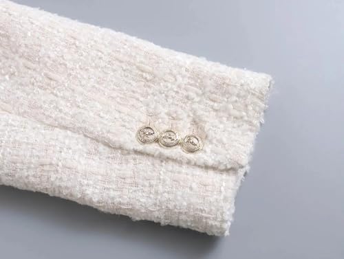 sought-after ! Women Double Breasted Tweed Blazer Coat Vintage Solid Work Office Long Sleeve Jacket with Pocket