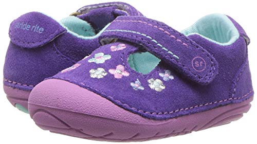 • Baby girl's suede mary jane with memory foam insole and adjustable strap