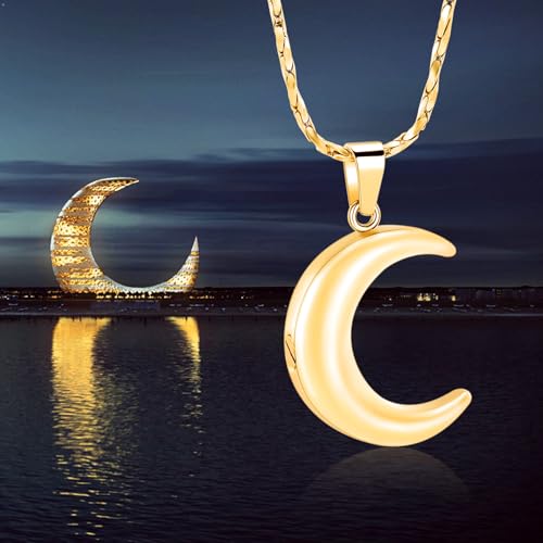 Imrsanl Cremation Jewelry for Ashes Moon Urn Necklace Stainless Steel Memorial Lockets Keepsakes Jewelry for Ashes Pendant - Fill kit (Gold) 1