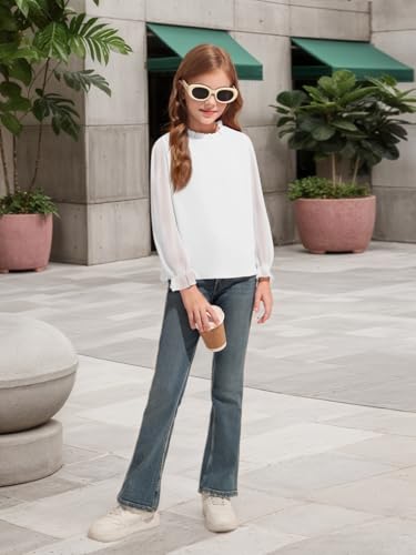 sought-after ! Haloumoning Girls Long Sleeve Shirts Chiffon Blouses Kids Cute Puff Sleeve Ruffle Mock Neck Casual Tops 5-14 Years