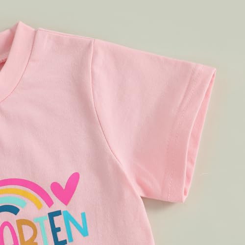 Fabric type: Cotton blendOrigin: ImportedClosure type: Pull OnNeck style: Crew NeckMaterial: This toddler girls first day of kindergarten shirt is made of 95% cotton and 5% spandex, lightweight, breathable, and skin-friendly.Design: First day of kindergarten shirt, toddler back to school shirt, features Hello Kindergarten letters print, rainbow love heart pencil pattern. Crewneck, short sleeve tees for toddler girls, first day of kindergarten shirtPerfect First Day Outfit: This Hello Kindergarten shirt is ideal for your child's first day of school, making them feel special and excited.Match: Casual 1st day of kindergarten shirt for girls, pair with shorts, skirts, straps, and trousers as a back to school set that will make your little angel shine!Package: 1x Toddler girl kindergarten short sleeve t-shirt. Please refer to the size chart carefully before ordering. impeccable for everyday use. supreme materials and excellent craftsmanship ensure long-lasting durability.