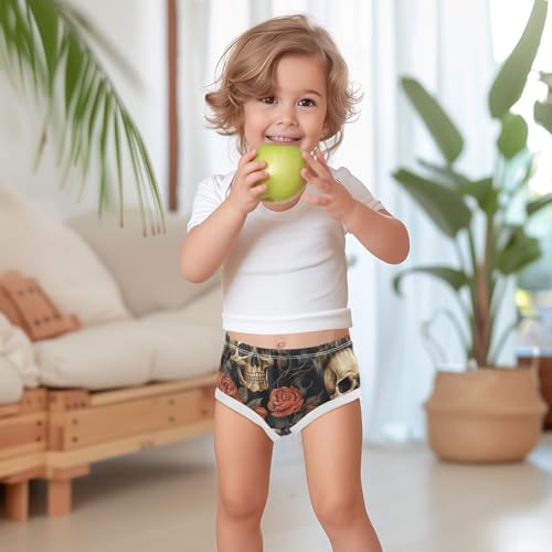 sought-after ! Toddler Briefs, Retro Skull Red Rose Girls' Cotton Brief Underwear, 2–8 Years