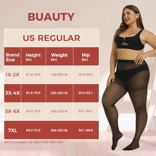 Buauty Plus Size Sheer Tights for Women, 20D High Waist Black Pantyhose Stockings for women Control Top Resistant(1 pair