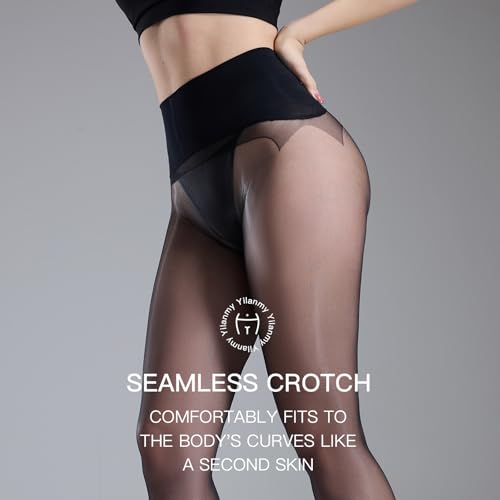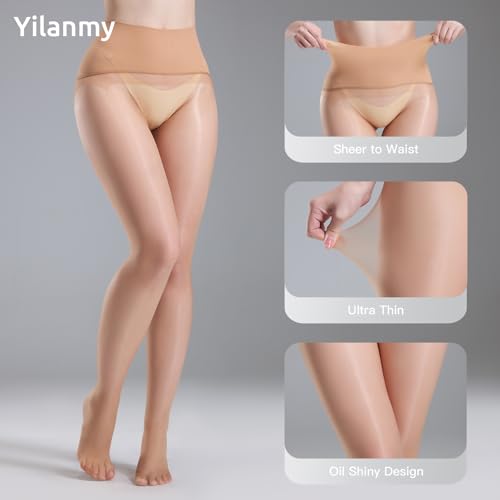 sought-after ! Yilanmy 2 Pairs Seamless Shiny Pantyhose for Women, 360° Seamless Oil Glossy Sheer Tights Shimmer Silk Stockings High Waist