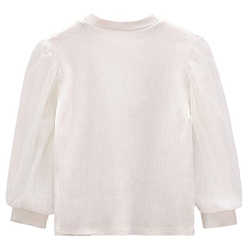 Toddler Girl Mesh Long Sleeve Shirt Blouse Lace Crew Neck Ribbed Cotton Tops