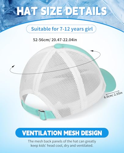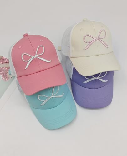 Girls Bow Tie Baseball Cap Kids Adjustable Summer Sun Hat Mesh Lightweight Trucker Hats Age 7-12