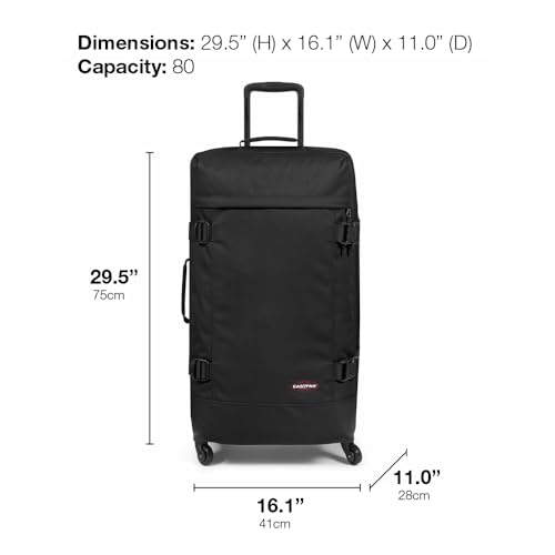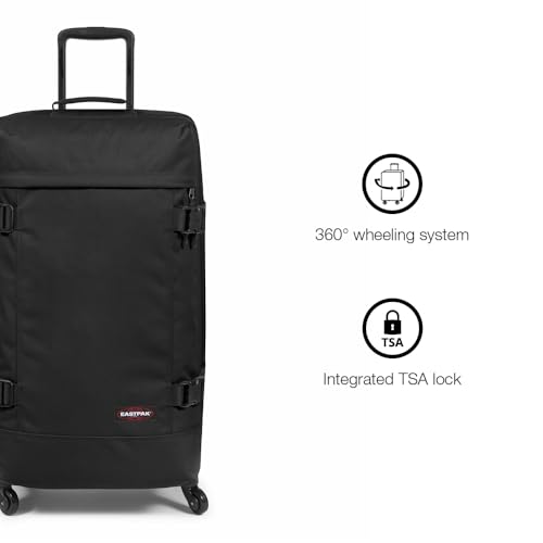 sought-after ! EASTPAK Trans4 L – 80L Large Wheeled Luggage with Dual Compartments, TSA Lock, 360° Spinner Wheels, and Diamond-Embossed Handle, Black