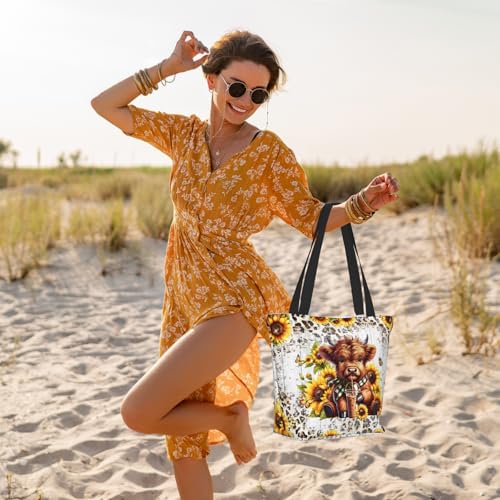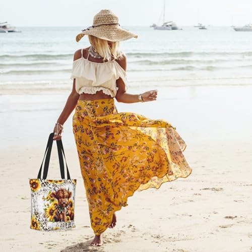 Fabric type: PolyesterCare instructions: Machine WashOrigin: ImportedAdorable Highland Cow Design: This funny tote bag features a charming Scottish Highland cow happily sipping coffee, perfect for animal lovers and caffeine enthusiastsDurable & Spacious: Crafted from durable polyester and PE foam with reinforced handles for long-lasting use, this highland cow tote bag is perfect for carrying books, groceries, beach essentials, and moreCharmingly Unique: This highland cow drinking coffee tote bag combines whimsical animal charm with café culture vibes, perfect for coffee dates, bookstore runs, or adding playful flair to everyday errandsPerfect Gift Idea: This coffee lover tote bag is cute and functional, great for birthdays, holidays, or just because. Men and women both love itMachine Washable: This easy-care sunflower tote bag is machine washable for convenience. It measures 11” (W) x 7” (D) x 13” (H) and is perfect for shopping, work, travel, or as a contemporary everyday carryall Perfect for everyday use. excellent materials and excellent craftsmanship ensure long-lasting durability.