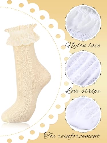 4 Pairs Women Lace Ruffle Frilly Ankle Socks Women Lace Socks Cute Dress Socks for Women Princess Accessories(Black, White, Pink, Light Yellow,7-11) 6
