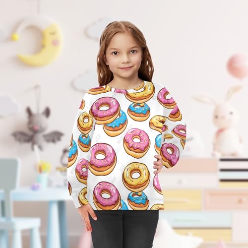 JUNZAN Cute Colorful Cartoon Donuts Pink Little Kids Sweatshirts Hoodies Crewneck Sweatshirt With Hoodie Party 4T 2