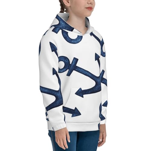 Navy Blue Anchor Kid Hoodies Boys Sweatshirts Girls Pullover with Pocket