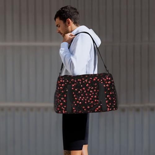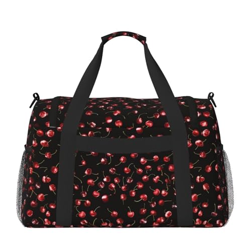 sought-after ! Cute Cherry Pattern Travel Duffle Bag Red Fruit Weekender Bag for Women Men Carry on Overnight Bag Yoga Gym Bag Workout Duffle Sports Bag