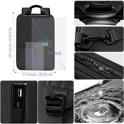 Wide Compatibility - The inner size of the laptop backpack: 16.5 x 11.4 x 2.8/5.9 inches (L x W x H); Compatible with most 17 inch laptops of HP Dell Asus Lenovo Acer MSI and Razer Blade 18 inch.Travel Backpack - Crafted from premium synthetic leather and polyester cloth, this backpack features a water-resistant coating that helps protect against light splashes and raindrops. While it offers great durability for everyday use, it's not designed for heavy downpours.Convenient Laptop Backpack - The travel laptop backpack owns a variable capacity for more flexible to load. Up to 16 independent pockets for your items good organized. TSA approved exclusive designed and size for airplane travel. ideal gifts for Anniversary Birthday, Christmas present.Elegant Travel Backpack - The travel laptop backpack owns two modes for daily commute and business trip and easy to transform between both. the slim mode for commuting or cycling and the expanded mode of the large capacity to meet your camping, day trip and overnight trip.Comfy & Sturdy - Comfortable soft and breathable padded for straps, Chest strap keeps the backpack firmly in back when you walking. Top leather handle easy to carry. Perfect for business and as a travel gift for men and women. Perfect for everyday use. High quality materials and excellent craftsmanship ensure long-lasting durability.