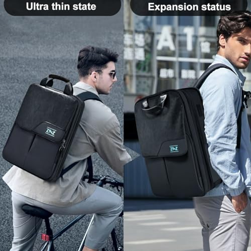 ZINZ Slim & Expandable Laptop Backpack 15.6 16 17 inch Travel Business Backpack Water-Resistant Daypack for Men and Women,Black