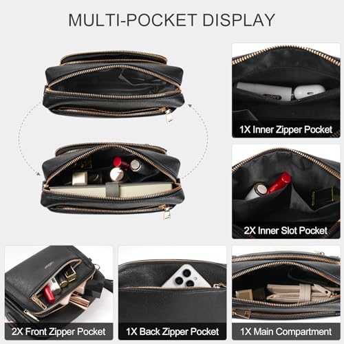 • [Multi-Compartment Design for Organization] This contemporary crossbody bag features 4 zippered compartments, including a main compartment (with 1 zippered pocket + 2 slip pockets), 2 front zippered pockets, and 1 back zippered pocket. The spacious yet compact layout keeps your essentials neatly organized for daily use.