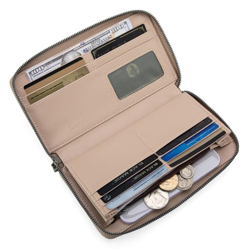 • Top zipper closure, interior credit card slots, bill pockets, 1 zip coin pocket, phone compartment.