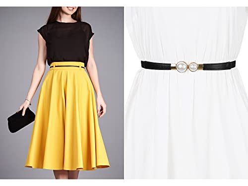 Women Skinny Stretchy Waist Belt, Gold Pearl Buckle Elastic Thin Waistband for Dress 5