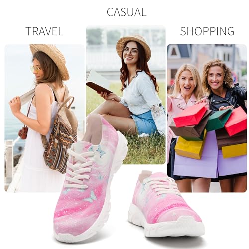 Fashion Sneakers for Womens Low Top Causal Shoes Butterfly Print cozy Lace-up Walking Shoes Cute Breathable Mesh Travel Sport Slip on Sneakers for Lady