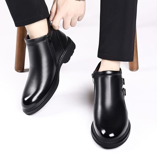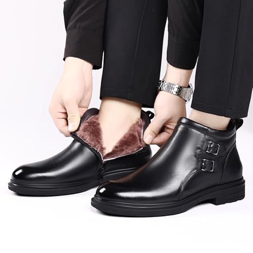 Men's Winter Business Casual Leather Boots,Cozy cozy Fur Lined Waterproof Monk's Strap Buckle Zipper Dress Oxford Boot