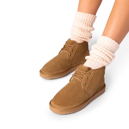 DREAM PAIRS Women's Ankle Winter Boots Genuine Suede Leather Faux Fur Lace Up Snow snug Comfort Cozy Short Booties FuzzyGo Women's Cozy