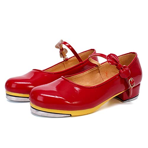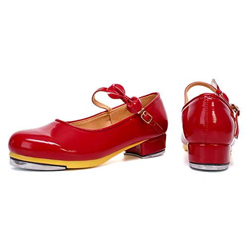 HIPPOSEUS Girls Tap Dance Shoe for Beginner Mary/Jane Dancing Shoes for Tap Danceing with Bow 208 5