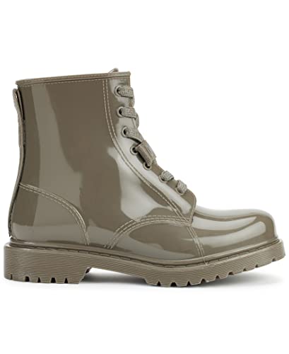 Origin: ImportedSole material: RubberShaft height: AnkleShaft circumference: 8.8Features: Metallic shiny rain boot, lace-up, vintage, boot, and with Lug-soleHeel Height: 0.83 heel heightPut your best foot forward: Elevate your style with your new favorite fashion sneakers, heels and boots to pair perfectly with each outfit and every season.Wardrobe essentials: Strut DKNY shoes at any occasion; they are sure to become an essential part of your wardrobe.Casual luxury: This boot is casual enough to wear at all occasions; luxury detailing expresses effortless style you can flaunt anywhere Perfect for everyday use. finest materials and excellent craftsmanship ensure long-lasting durability.