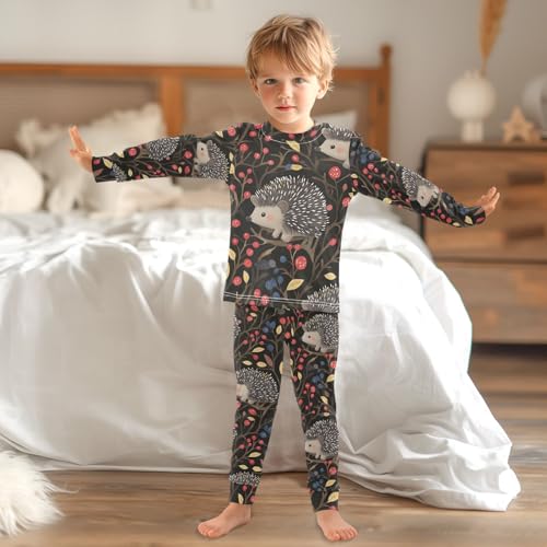 Fustylead Cute Hedgehog in Forest 2-Piece Cotton Pajama Set, Long Sleeve Top and Matching Bottom