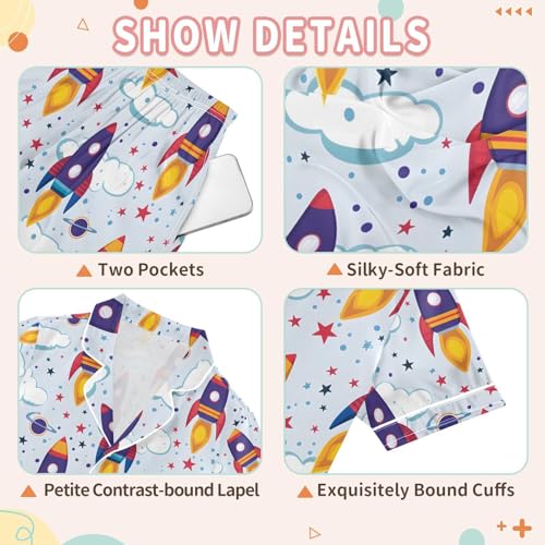 Why Choose ALAZA Spaceship Cloud Star Pajamas Satin Pajama Set Short Sleeve Button Down Sleepwear?