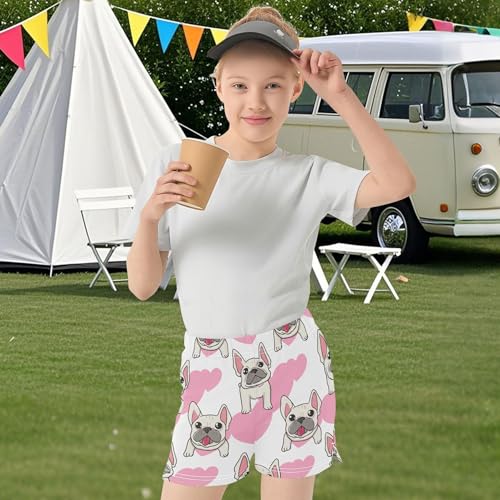Girls Athletic Shorts Cute French Bulldog Cartoon Animal Youth Kids Pajama Sleep Shorts Comfy Summer Clothes, X-Small 1