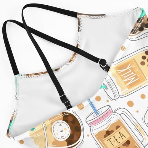 susiyo Girls One Piece Swimsuits Taiwanese Boba Pearl Milk Tea Bathing Suit fast Dry Beach Swimwear for Toddler Girl 3-10T