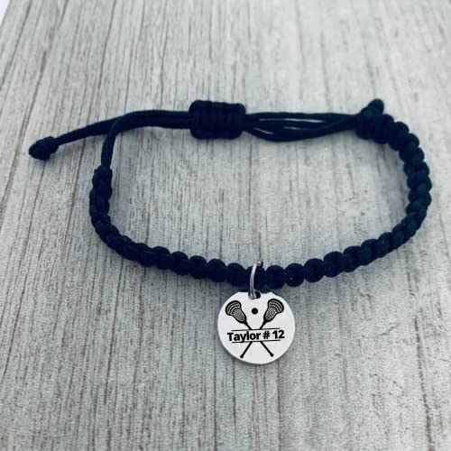 sought-after ! Personalized Lacrosse Bracelet – Custom Engraved Stainless Steel Charm with Jersey Number – Adjustable Rope Jewelry – Gift for Lacrosse Player or Team