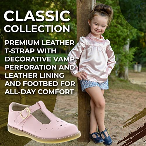 FOOTMATES Sherry Mary Jane Hook and Loop Leather T-Strap Shoes with Wide Toe Box and Custom-Fit Insoles, Non-Marking Outsoles - for Toddlers and Kids, Ages 1-8 5