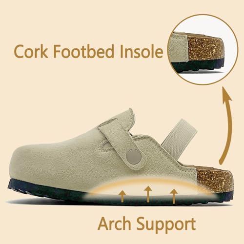 Kids Suede Clogs Boys Girls Sandals Cute Cork Footbed Adjustable Buckle Mules Toddler Slip-on Slippers Indoor Outdoor 6